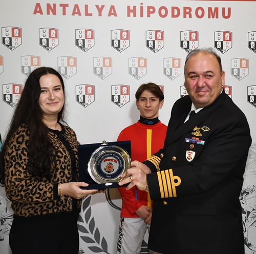 Kazanan atların antrenörleri adına Zeynep Kurt'a plaketini Sahil Güvenlik Okul Komutanı Sg. Alb. Hasan Aldemir verdi.