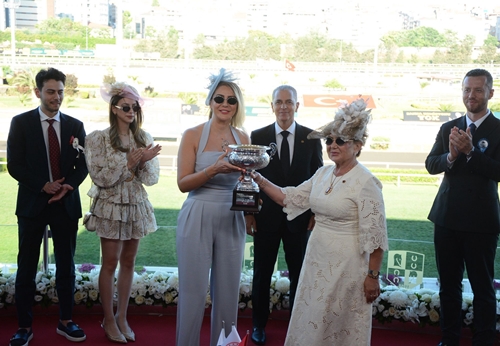 Yarış sonrası Şeref Tribünü’nde gerçekleştirilen törende, kazanan atın sahibi Sanem Kahraman’a kupasını, Kulübümüz Genel Sekreteri Gülnur Gülerce takdim etti.
