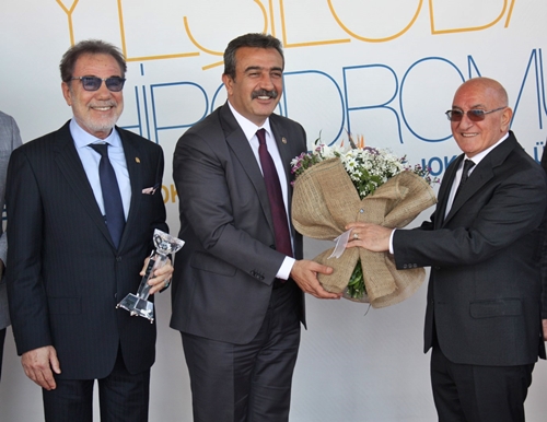 Soner Çetin ayrıca, kazanan safkanın sahibi Hayrettin Karamazı'ya çiçek verdi.