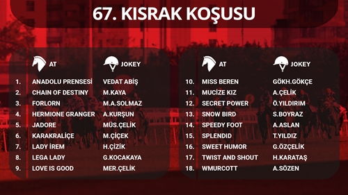 2022 yılı Sait Akson Koşusu'na katılacak olan taylar şu şekilde sıralanıyor;